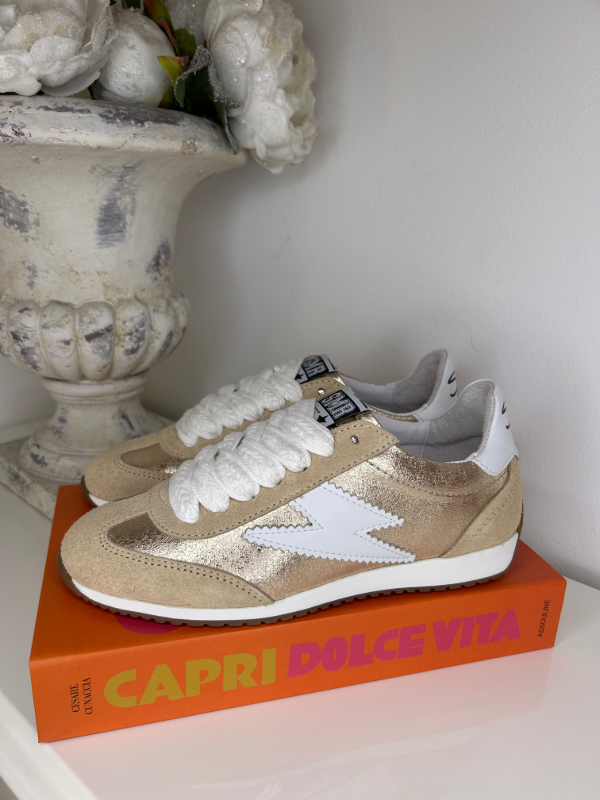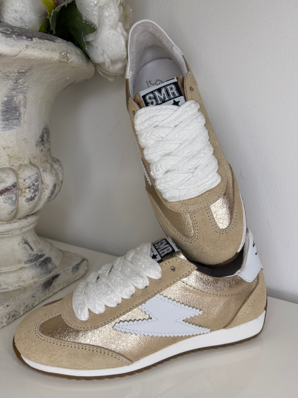 • Détail : Finition métallisée et lacets structurés.
