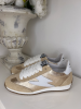 • Semelle : Gomme blanc/miel (2 cm)  + semelle intérieure amovible en cuir (2 cm).